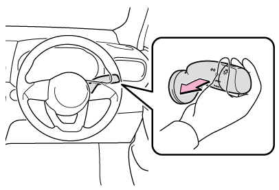 スイッチを下にまわした状態で約1秒保持してから、手を離します。約1秒保持しないと、ランプ類の作動は2