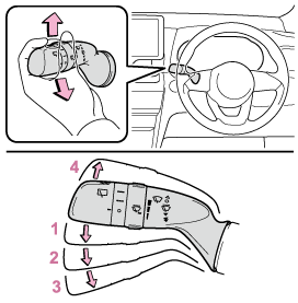 レバーを操作すると、ワイパーまたはウォッシャーが作動します。