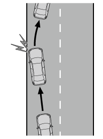 • 先行車・周辺車が車線変更したとき(先行車・周辺車の動きに合わせて自車も車線変更するおそれがあります)