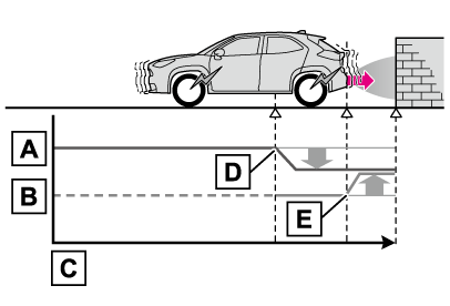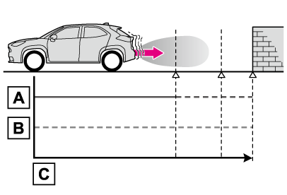 PKSB(パーキングサポートブレーキ)は、完全に車両を停止させるシステムではありません。また、車両を停止させることができたとしても、ブレーキ制御は約2秒で解除されるため、すぐにブレーキペダルを踏んでください。