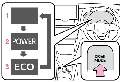 ドライブモードセレクトスイッチを押すたびに、ノーマルモード、パワーモード、エコドライブモードの順で切りかわります。