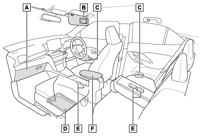 メガネ、ライターやスプレー缶を収納装備内に放置したままにしないでください。