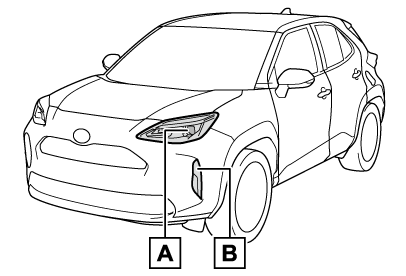 ヘッドランプ、フロント方向指示灯/非常点減灯はボンネットを開けてから作業してください。