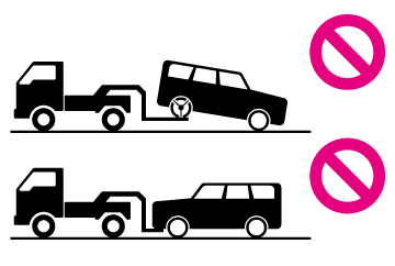車両の損傷を防ぐために図のようなレッカー車ではけん引しないでください。