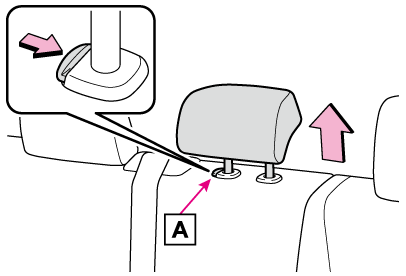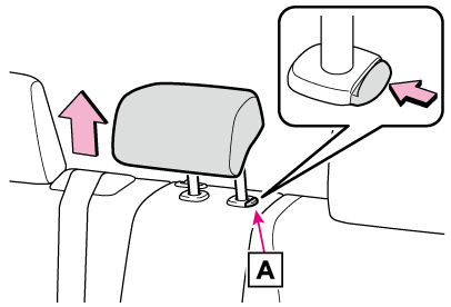 を押しながら操作します。必ずヘッドレストの中心が両耳のいちばん上のあたりになるよう調整してください。