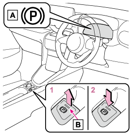 - スイッチを押し、パーキングブレーキを解除する