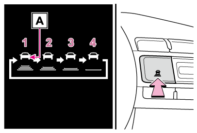 1. 走行支援モード選択スイッチを押してレーダークルーズモードを選択します。