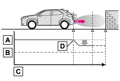 PKSB(パーキングサポートブレーキ)は、完全に車両を停止させるシステムではありません。また、車両を停止させることができたとしても、ブレーキ制御は約2秒で解除されるため、すぐにブレーキペダルを踏んでください。