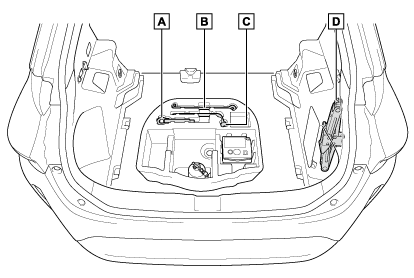 お客様の車にはタイヤパンク応急修理キットが標準装着のため、タイヤ交換に使用する以下の工具は搭載されていません。工具はトヨタ販売店で購入することができます。