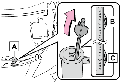 • エンジンルームから蒸気が出ている場合は、蒸気が出なくなるまでボンネットを開けないでください。エンジンルーム内が高温になっています。